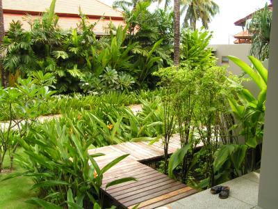 Hier oben kann der Blick schon wieder über Dacher, Bäume und Meer schweifen und hin und wieder zieht ein "Longtail" (=Boot, nicht Drache! -Sorry, Miss Rowling) vorbei.